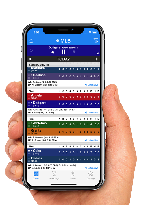 Dodgers Pro Baseball Radio delivers up to date scores, schedules, and standings, and allows you listen to Dodgers affiliate radio stations for games live. It's almost like you have a seat at Dodger Stadium. The scores constantly update so you will never miss any sports action again!