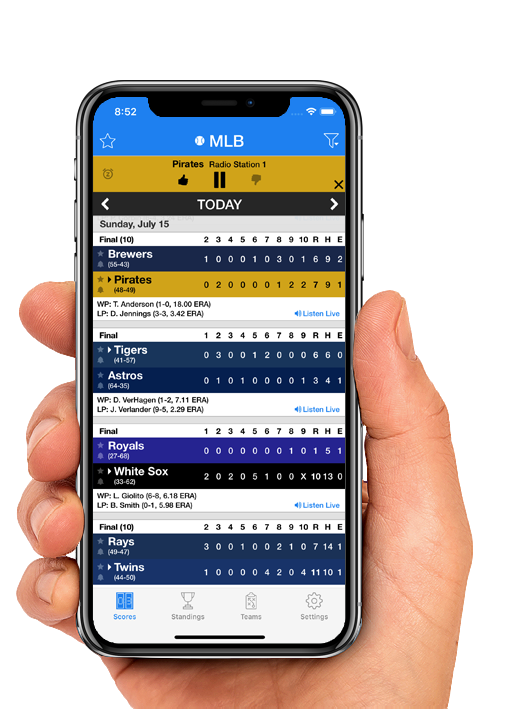 Pirates Pro Baseball Radio delivers up to date scores, schedules, and standings, and allows you listen to Pirates affiliate radio stations for games live. It's almost like you have a seat at PNC Park. The scores constantly update so you will never miss any sports action again!